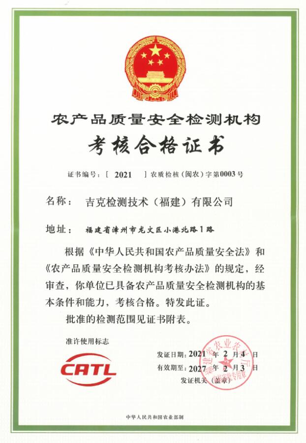 吉克檢測技術(福建)有限公司,位于福建省漳州市龍文區(qū)小港北路1號,于2019年8月注冊成立,是一家獨立的第三方檢測公司。公司已經(jīng)通過檢驗檢測機構計量認證(CMA)、農(nóng)產(chǎn)品質量安全檢測機構資質認證(CATL),獲得中國合格評定國家認可委員會(CNAS)認可。公司本著“嚴謹、規(guī)范、高效、協(xié)作”的原則和對客戶及社會高度負責的精神,充分利用本公司優(yōu)質的檢測環(huán)境、先進的檢測設備和專業(yè)的技術人員,第一時間為客戶提供科學、公正、準確的檢驗檢測報告。       公司實驗室面積1100多平方米,儀器設備兩百多臺(套),固定資產(chǎn)一千多萬元,在職員工31人,技術人員中的中高級職稱及同等能力人數(shù)占60%以上。我們的服...